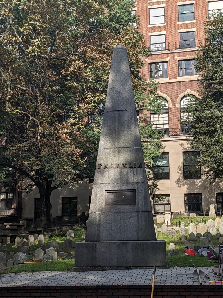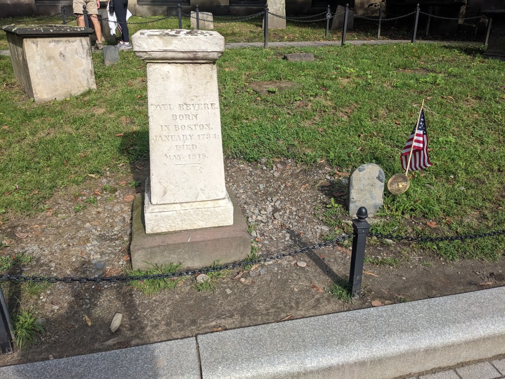 The big obelisk pictured is not dedicated to Benjamin Franklin. It is, however, dedicated to his parents, Josiah and Abigail. Benjamin is buried in Philadelphia, not Boston. Below is the grave of Paul Revere. We’ll get to him. Other notable burials include Samuel Adams, signer of the Declaration of Independence, Crispus Attucks, believed to be the first person killed during the Boston Massacre, Mary Goose (AKA Mother Goose), to name but a few. Some of those names may come up again, but moving on to the next location: