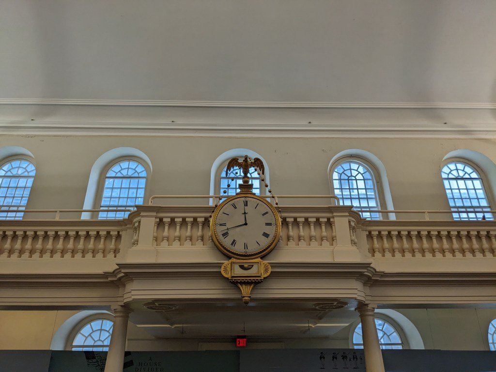 Inside, you will find the building is more or less laid out like a church; a central alter, where it’s understood many of the speakers would have stood, and surrounding pews laid out so they are all facing it – interestingly enough, each of them is fully enclosed by a wooden surround, leaving me only just enough legroom to sit down. There are also cut-outs of important individuals from Boston’s history going all the way up to the 20th century with a scannable QR code for more info near each, but I didn’t really have the time to go through every single one. Whilst I was here, there was another talk from a member of staff about the buildings importance, which was, again, really interesting and helped out by the enthusiastic speaker. Fun fact: this apparently used to be the tallest building in the city before all the skyscrapers started going up, and was also narrowly saved from the Great Boston Fire of 1872.