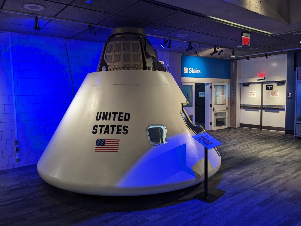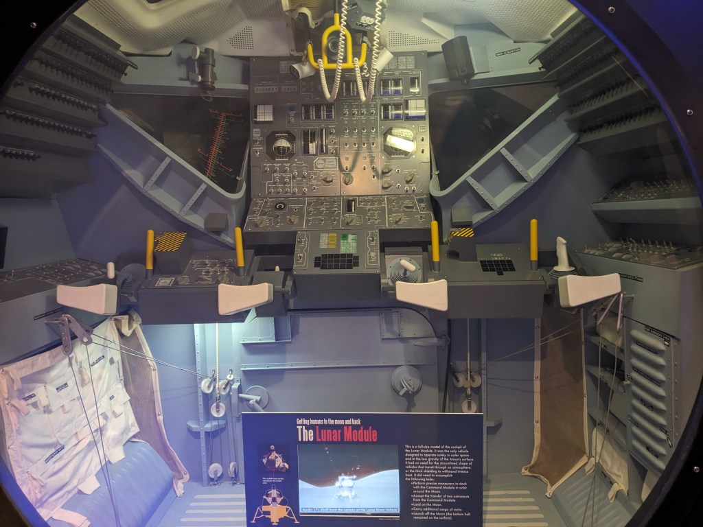 Heading downstairs to the bottom of the atrium is the section on space travel, with Mars ominously looming above your head (I’m surprised they didn’t have background music by Holst). There are replicas of the Mercury Spacecraft, Eagle Lunar Module and Apollo Command Module (the latter of which they have built so you can sit in and give your best impersonation of Major Tom).
